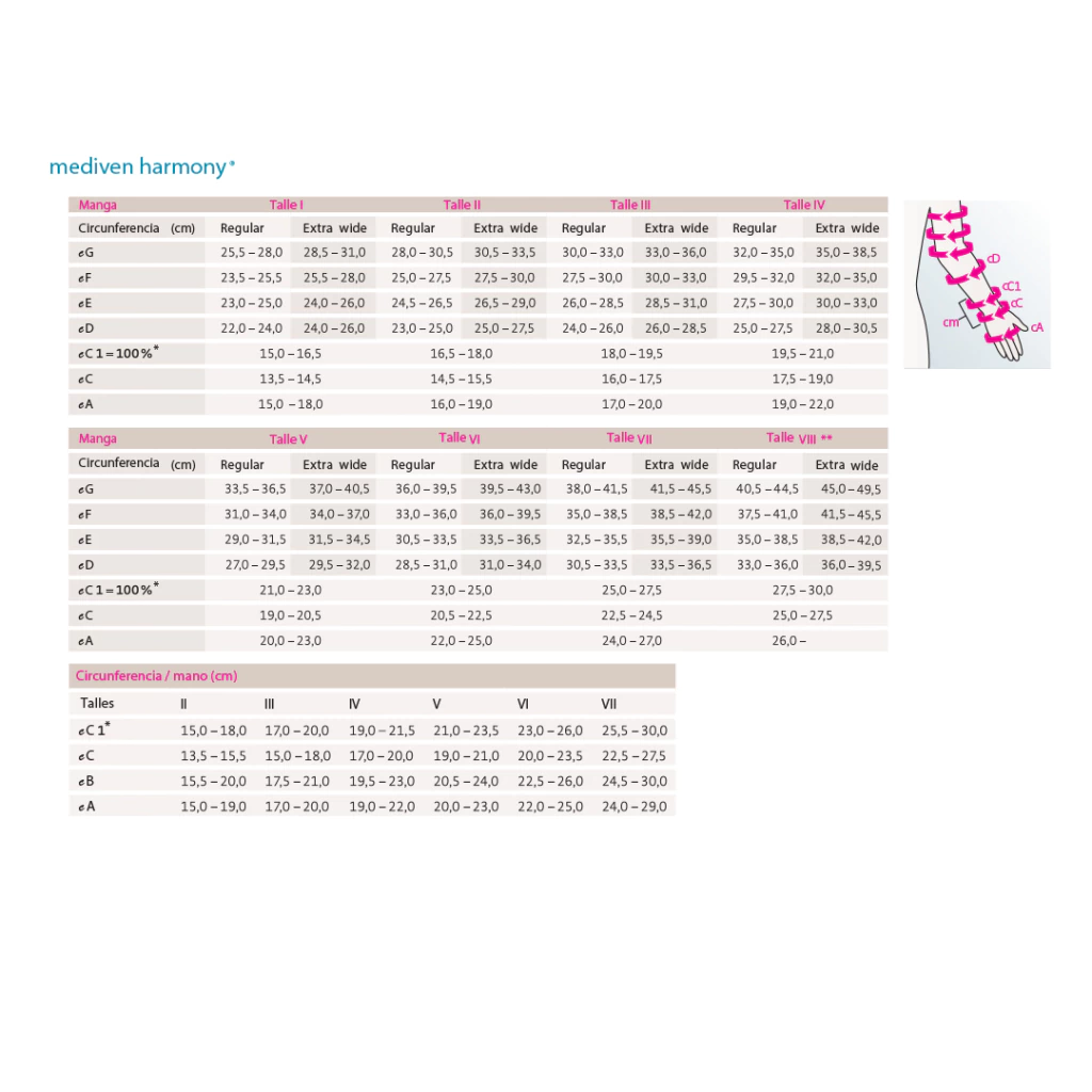 Disponible en siete tamaños estándar, Mediven Harmony® cuenta con cómodidad que garantiza una sujeción firme y segura. Su tecnología avanzada y diseño ergonómico aseguran un ajuste óptimo, ofreciendo bienestar y efectividad en el tratamiento compresivo.